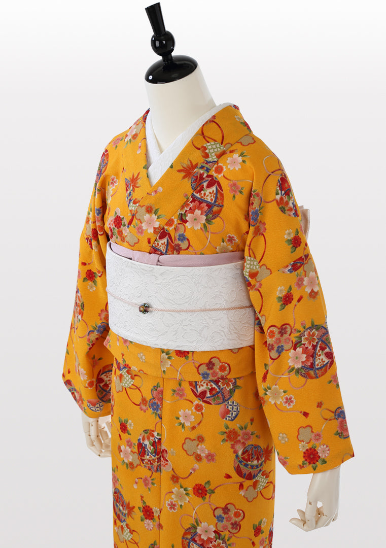 鮮やかな色と、毬の丸いフォルムが女性の可憐な魅力を引き立てます。