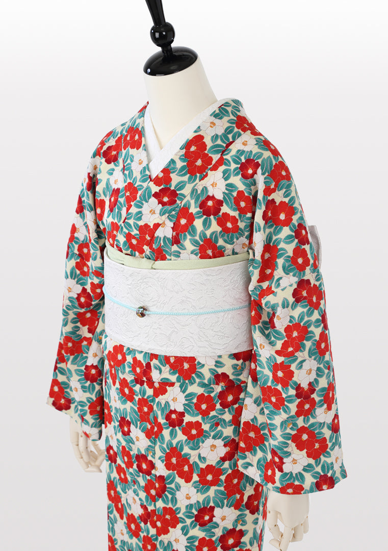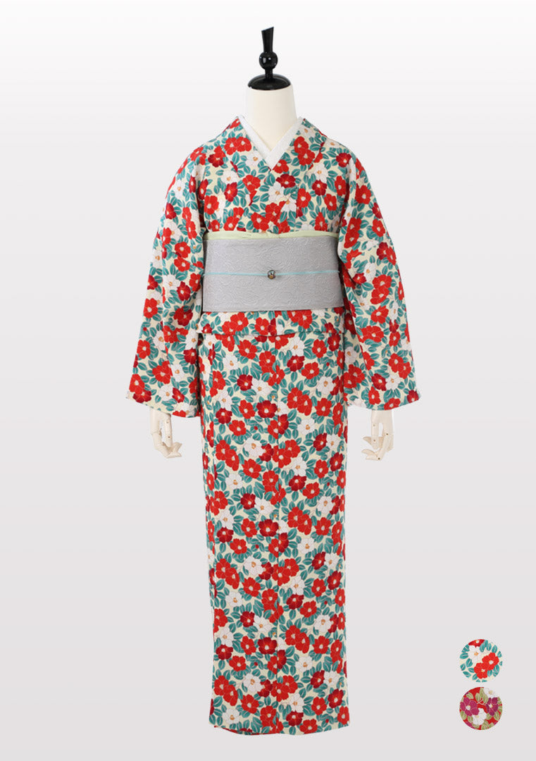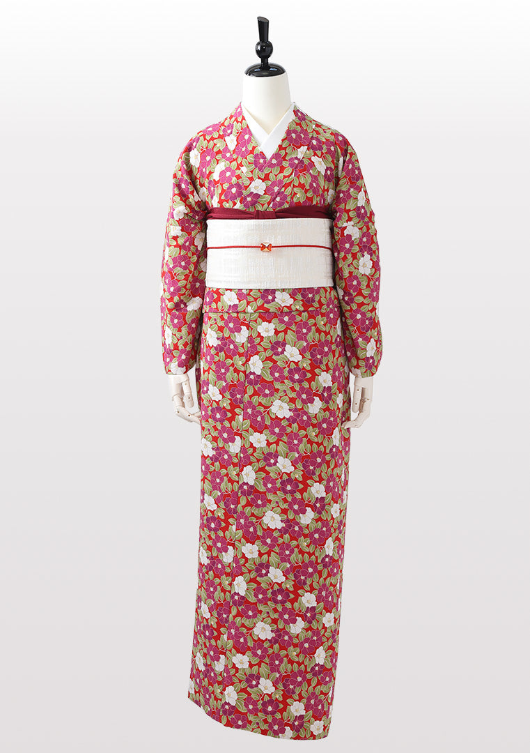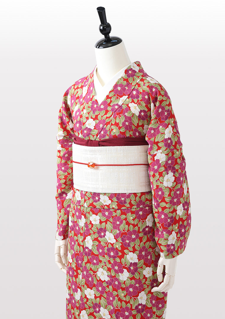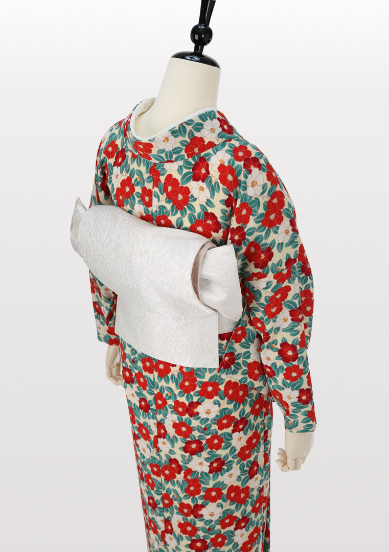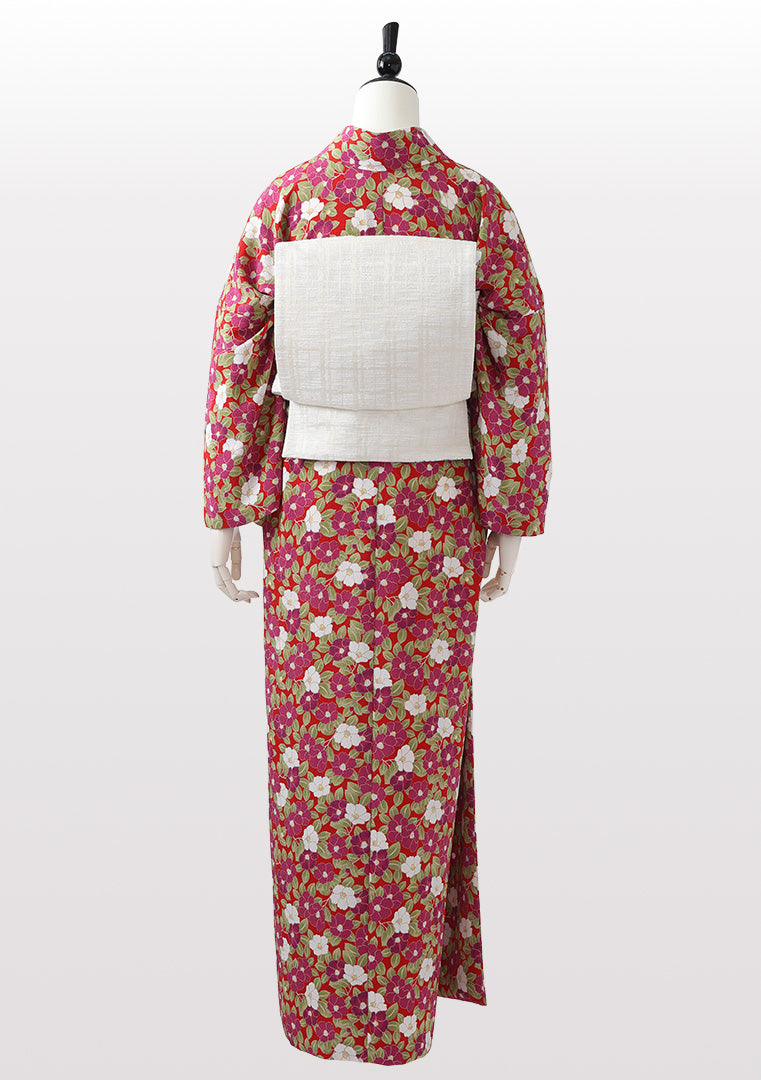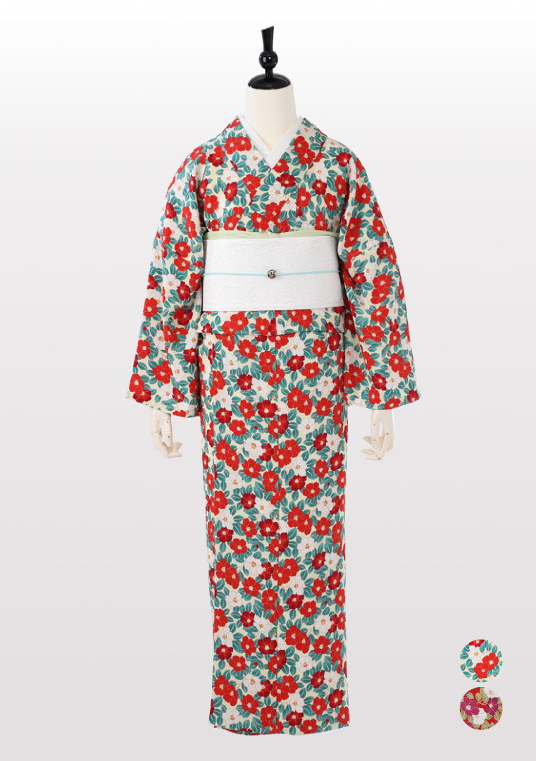 日本らしさと可愛らしさを融合させたモダンな椿のデザインを、二越ちりめんの生地に描きました。