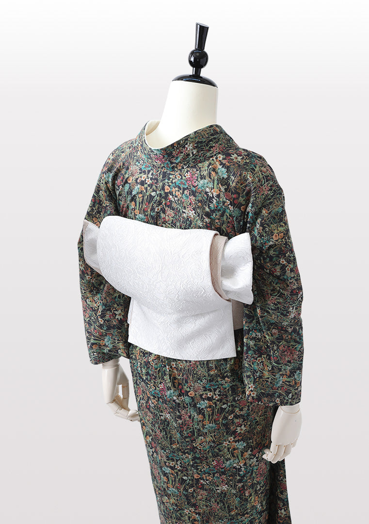 シックなブラックのバリエーションは、あわせる帯によって大きくイメージが変化します。